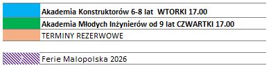 Oferujemy Państwu możliwość zapisania przyszłych Inżynierów zarówno na pojedyncze zajęcia w soboty, jak i na cykle zajęć trwające w czasie całego roku szkolnego. Szczegóły poniżej.